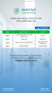 فرص وظيفية 2025 في كلية النهضة – السعودية